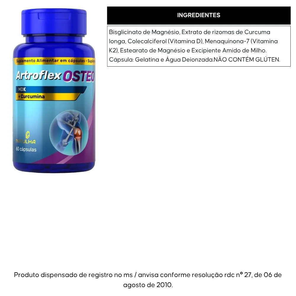Artroflex Osteo ( Curcumina, Magnésio, Vitamina D3 e K2) 60 Cápsulas - Natulha