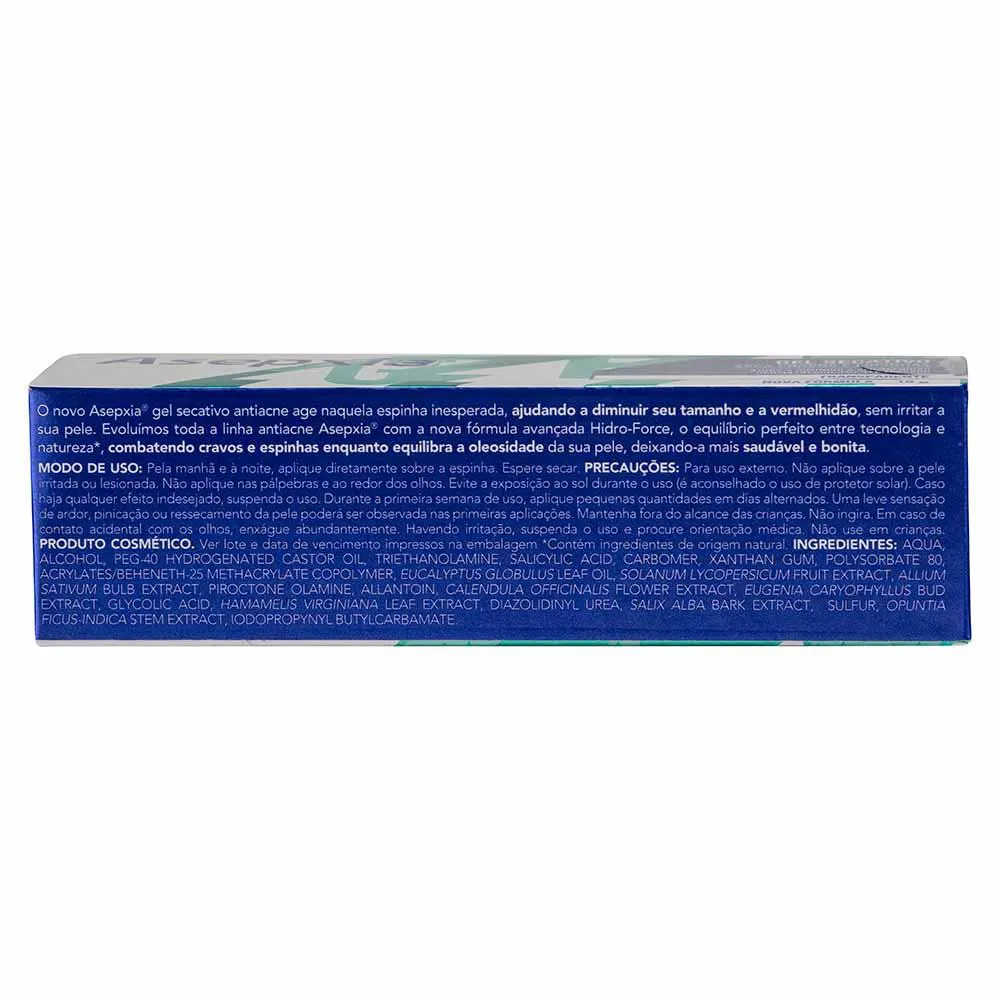 O Asepxia® Gel Secativo Antiacne foi especialmente desenvolvido para cuidar da pele com cravos e espinhas.