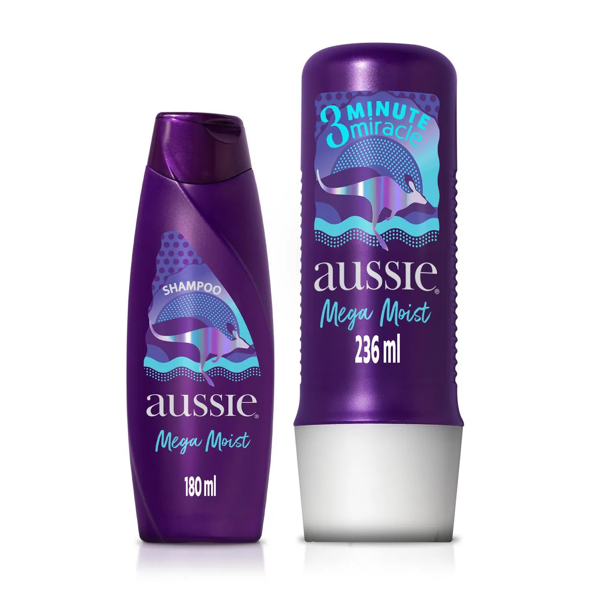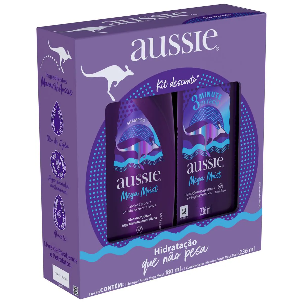 Kit Aussie Mega Moist Shampoo 180ml + Creme de Tratamento 3 Minute Miracle 236ml