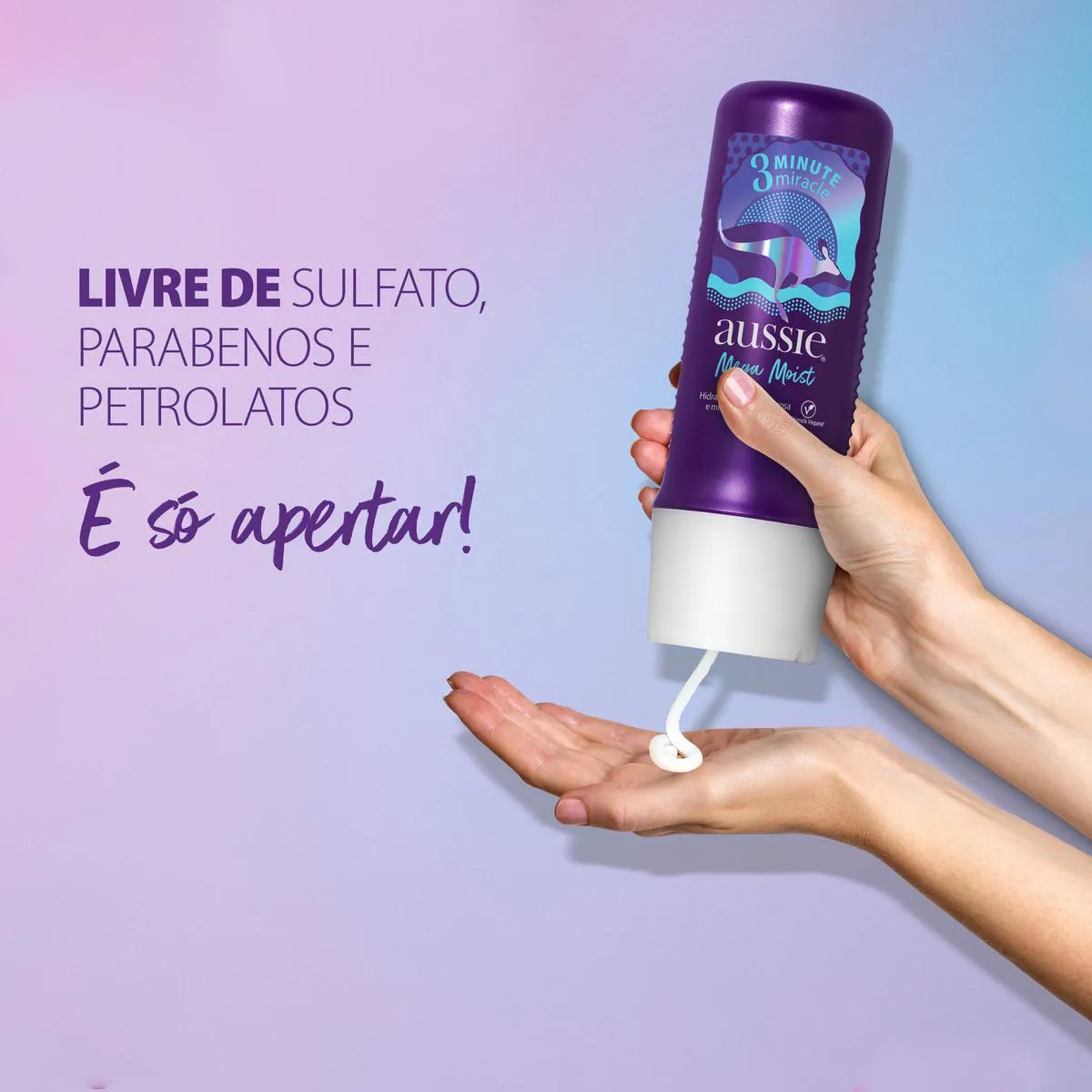 O Aussie Moist é um shampoo que promove uma hidratação profunda nos fios, proporcionando um cabelo mais macio, sedoso, livre de frizz e com mais movimento desde a primeira aplicação.