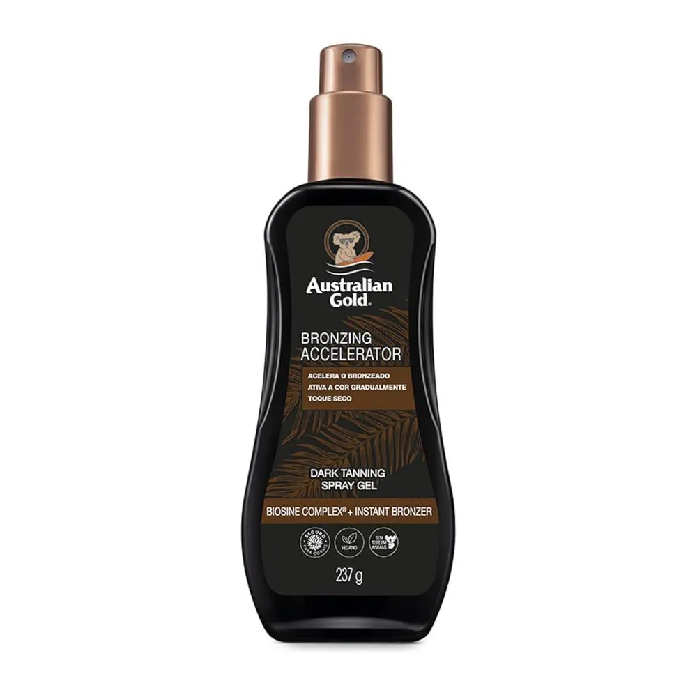 O Acelerador Dark Tanning com Instant Bronzer da Australian Gold é perfeito para quem deseja um bronzeado dourado, intenso e duradouro. Com fórmula exclusiva, ele acelera o processo natural de bronzeamento enquanto o Instant Bronzer proporciona um efeito dourado imediato para um brilho impecável desde a primeira aplicação.