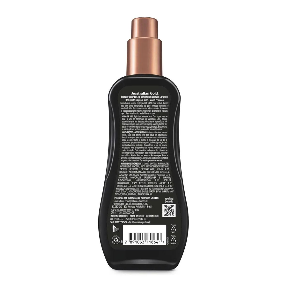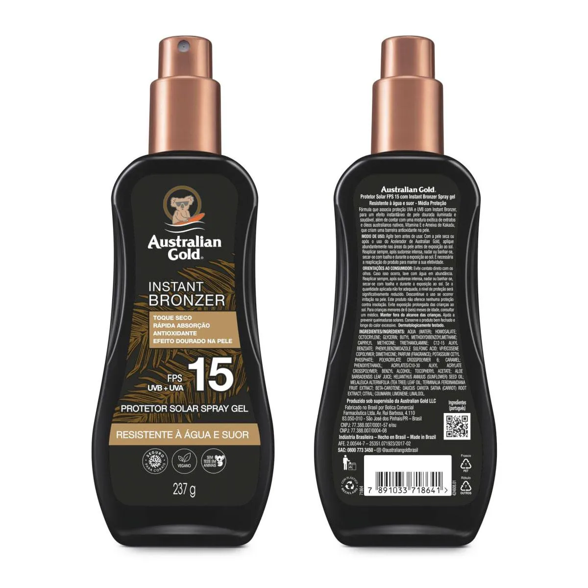 Instant Bronzer é um bronzeador com protetor solar da Australian Gold, referência mundial em bronzeadores e protetores solares. Com a exclusiva tecnologia Biosine Complex, bronzeia instantaneamente a pele, de forma segura, e ainda deixando um cheirinho agradável após a aplicação. Tem textura leve em gel, é facilmente absorvido, e sua fórmula contém ingredientes naturais australianos, como a Ameixa Kakadu, fonte riquíssima de vitamina c e que auxilia na produção de colágeno e no combate aos radicais livres.