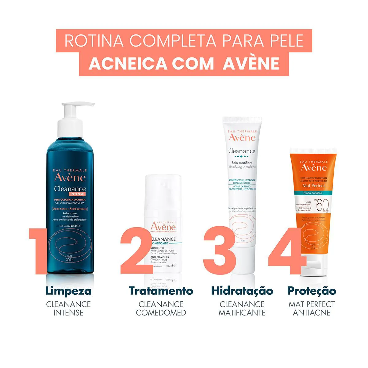 O Gel de Limpeza Profunda Avène Cleanance Intense foi desenvolvido para a limpeza da pele oleosa a acneica. Os ativos Ácido Lático e Ácido Succínico presentes em sua fórmula, promovem uma limpeza profunda sem ressecar, enquanto reduzem a acne, evitam o efeito rebote e garantem ação antioleosidade prolongada.