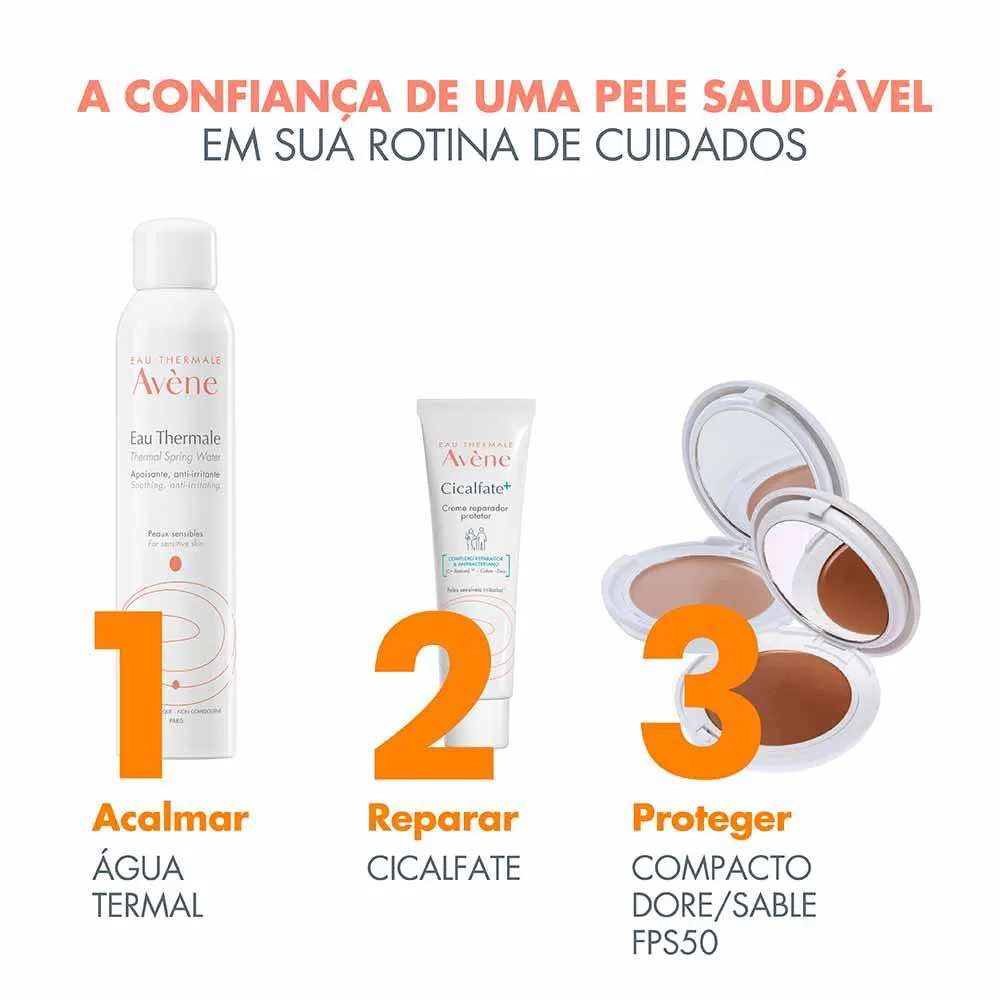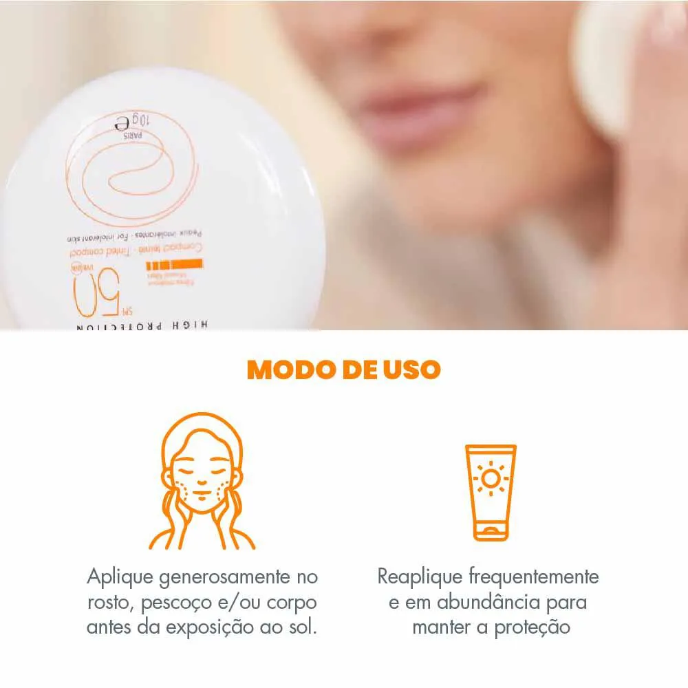 Sua textura cremosa facilita a aplicação, permitindo obter uma coloração dourada natural e uma proteção solar homogênea e eficaz. Avène Solar Compacto Fps 50 Pode ser utilizado após procedimentos dermatológicos (pós-laser e pós-peeling).