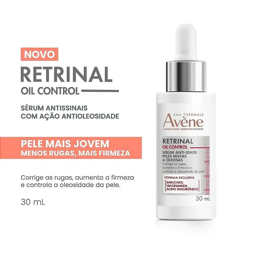 O Avène Retrinal Oil Control Sérum é um sérum antirrugas de alta performance, desenvolvido especialmente para peles mistas a oleosas, inclusive as sensíveis. Sua fórmula avançada atua simultaneamente no controle da oleosidade e nos sinais do envelhecimento, promovendo uma pele visivelmente mais jovem, uniforme e equilibrada. Com textura leve, não oleosa e de rápida absorção, o sérum ajuda a reduzir rugas, melhorar a firmeza, a densidade e a textura da pele, além de uniformizar o tom, proporcionando um acabamento confortável e luminoso.Principais benefícios