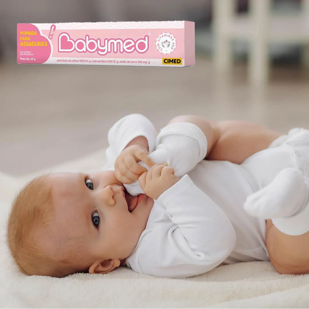 Babymed Rosa Pomada para assaduras 45 g – Cimed A Babymed Rosa da Cimed é uma pomada desenvolvida para o cuidado diário da pele delicada dos bebês, especialmente nas áreas em contato com fraldas. Sua fórmula contém palmitato de retinol (vitamina a), colecalciferol (vitamina d) e óxido de zinco (100 mg/g ou 150 mg/g conforme a formulação), componentes que ajudam na manutenção da pele protegida e confortável. Com textura cremosa, fácil de aplicar e espalhar, forma uma camada protetora sobre a pele, reduzindo o contato direto com agentes irritantes presentes na urina e nas fezes. Ideal para uso diário após a limpeza da pele na troca de fraldas. Características técnicas: - Contém palmitato de retinol (Vitamina A) + colecalciferol (Vitamina D) + óxido de zinco. - Apresentação: bisnaga com 45 g. - Textura cremosa, fácil de aplicar, adequada para uso infantil. - Desenvolvida para formar barreira protetora na pele em contato com fraldas ou umidade. - Uso externo Modo de uso: Limpe e seque bem a pele da área da fralda. Aplique uma camada fina da pomada Babymed Rosa nas áreas indicadas, uniformemente, a cada troca de fralda ou sempre que necessário. SOBRE A LOJA: Somos a rede de farmácias mais antiga de São José dos Pinhais, atuando no ramo farmacêutico desde 1990 com comprometimento à qualidade e satisfação do cliente. É um prazer compartilhar os nossos valores e as nossas conquistas com quem confia no nosso trabalho! Imagens dos Produtos são Meramente Ilustrativas. Todas as Informações Divulgadas são de Responsabilidade Exclusiva do Fabricante/fornecedor.
