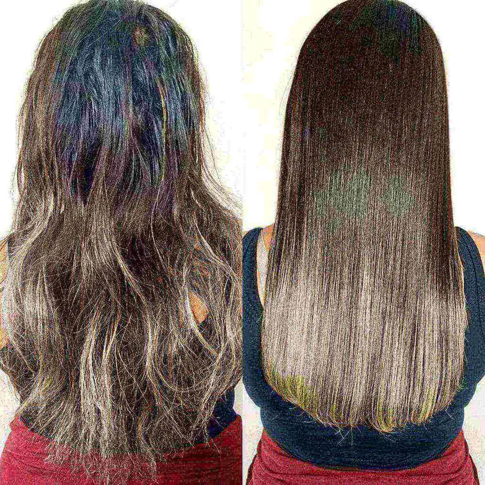 Para a redução completa do volume, lavar com um shampoo antirresíduos e enxaguar, secar 100% do cabelo e dividi-lo em 4 (quatro) partes.