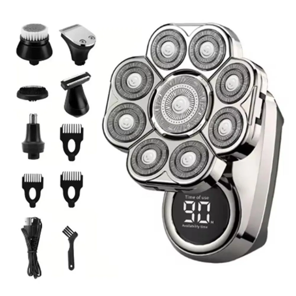 arbeador Elétrico 9 em 1 – Precisão e Versatilidade em um Só ProdutoDescubra o que há de mais moderno em cuidados pessoais com este Barbeador Digital 9 em 1, projetado para oferecer praticidade e eficiência:Cabeça de Corte 4D com 9 Lâminas: Adaptação inteligente aos contornos do rosto, garantindo um barbear rápido, suave e confortável.9 Funções em 1: Inclui aparador de precisão, aparador de nariz e orelhas, escova de limpeza facial, esponja macia, massageador e mais, para atender a todas as suas necessidades de cuidados pessoais.Tela Digital Inteligente: Monitora a energia restante, exibe tempo de uso, status de carregamento e bloqueio para viagens.Bateria de Longa Duração: Até 90 minutos de uso contínuo após apenas 2 horas de carregamento.Carregamento USB: Compatível com carregadores portáteis, laptops e carros, proporcionando praticidade onde você estiver.À Prova D'Água IPX6: Corpo inteiro lavável, ideal para uso no banho e limpeza fácil.Conteúdo do Pacote: Barbeador com capa protetora, 9 cabeças intercambiáveis, escova de limpeza, pentes limite, cabo USB e manual do usuário.Cuide do seu visual com a tecnologia e a inovação que você merece.