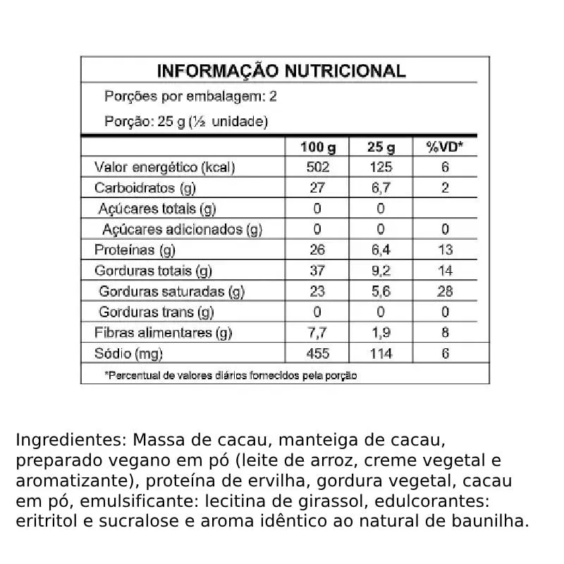 - Feito com chocolate ao leite zero adição de açúcares;