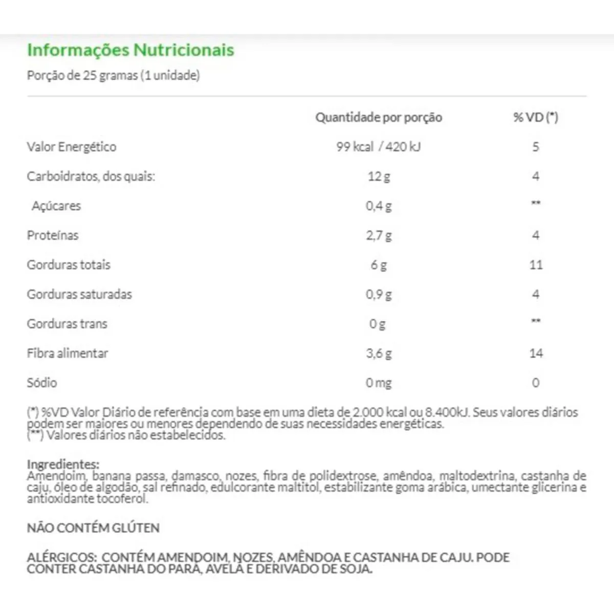 A Barra de Nuts Zero Açúcar de Banana, Damasco e Nozes, da &Joy, é uma opção saudável e gostosa para seus lanches. É feita com castanhas inteiras, tem baixo teor de carboidratos, é isenta de sódio e, ainda é fonte de fibras. Além disso, não tem conservantes, corantes ou aromatizantes.