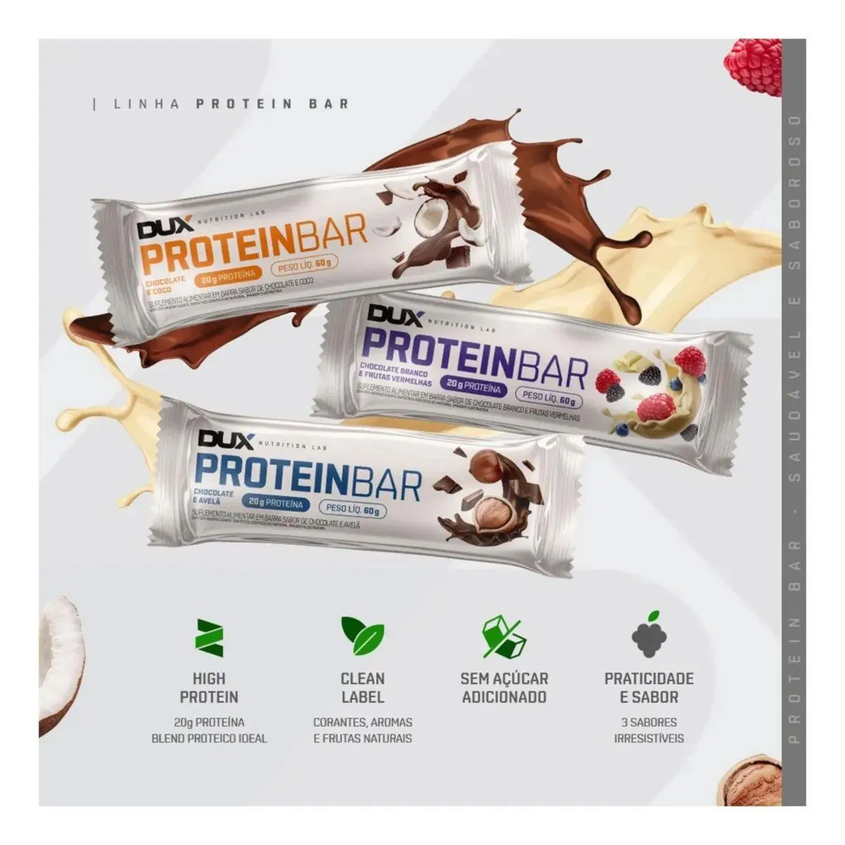 Protein Bar 60g – 20g de Proteína – DUX Praticidade, nutrição e sabor em uma única barrinha