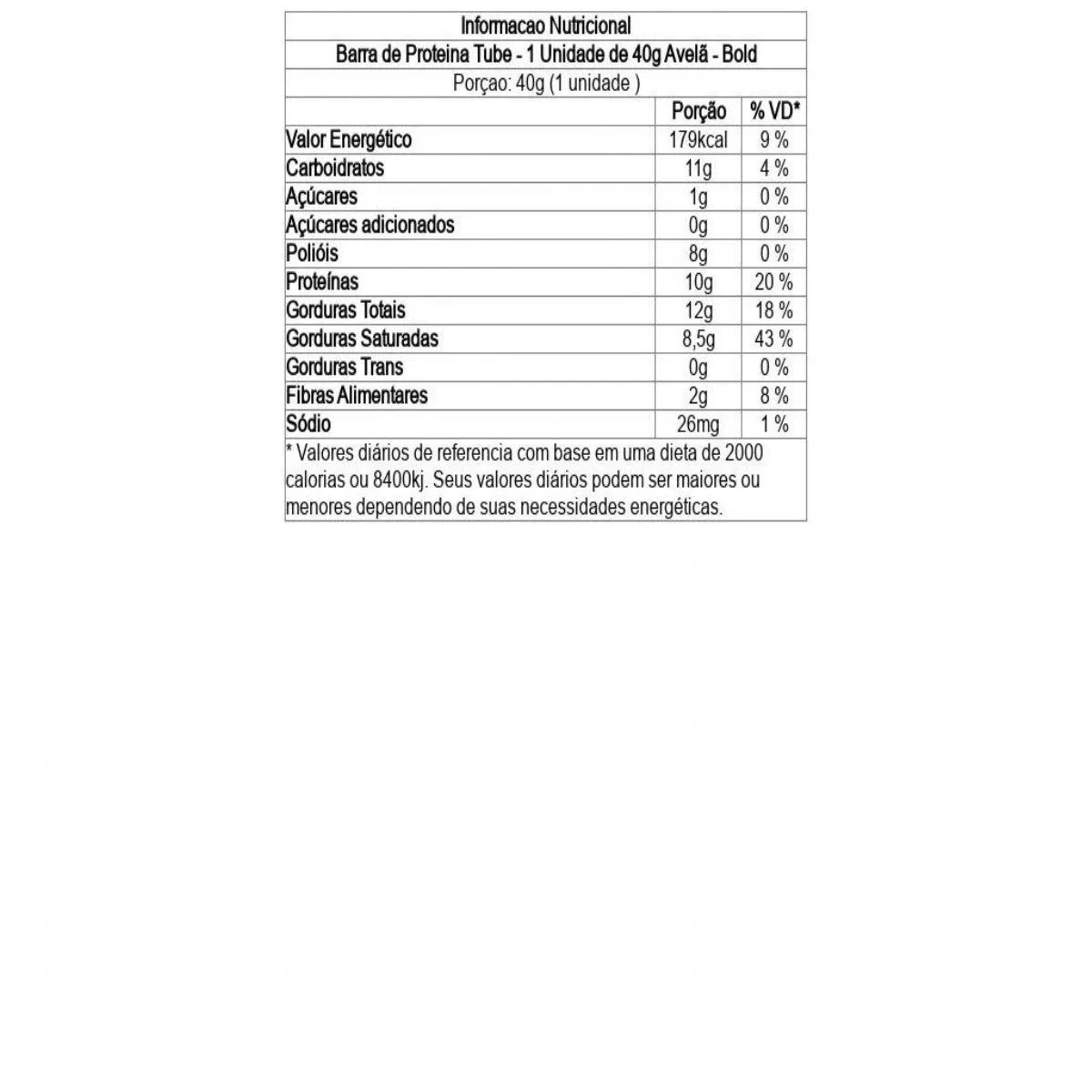 Barra de Proteina Tube - 1 Unidade de 40G Avelã - Bold