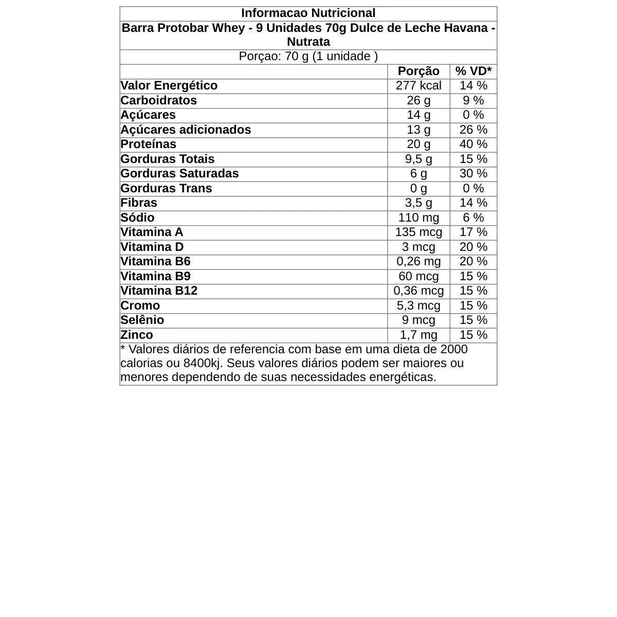 Barra Havana Protobar Whey - 9 Unidades 70G Brownie de Chocolate com Dulce de Leche - Nutrata