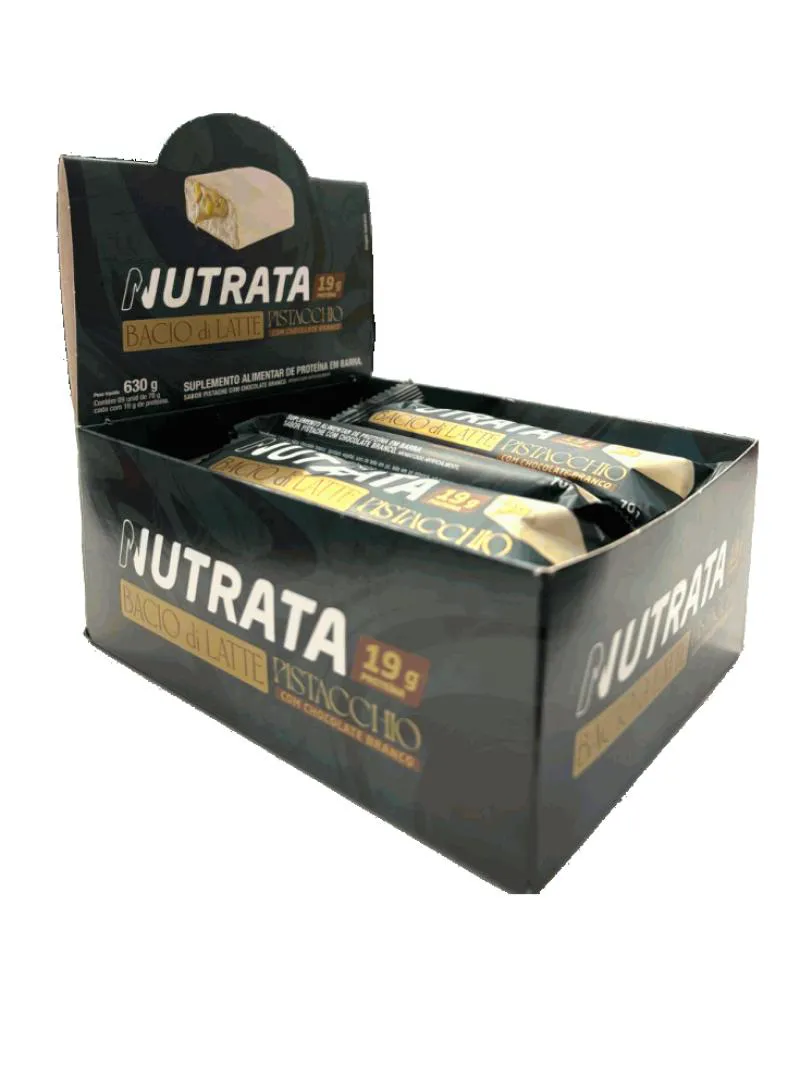 Display com 09 unidades da proteína que é puro prazerQuem disse que proteína precisa ser sem graça? A Barra de Pistache Bacio di Latte da Nutrata prova o contrário: une sabor intenso, textura cremosa e uma composição nutricional equilibrada. Com 19g de proteína por unidade, cobertura de chocolate branco e um recheio irresistível, ela é a escolha certa para quem busca nutrição com sofisticação.Seja como lanche rápido, após o treino ou como opção prática na bolsa, o display com 9 unidades garante conveniência, economia e muito sabor no seu dia a dia.Destaques:* 19g de proteína por barra* Delicioso sabor de pistache com chocolate branco* Zero adição de açúcares* Apenas 193 mg de sódio por unidade* Embalagem com 09 unidades: ideal para ter sempre à mãoPara quem é perfeita:* Quem segue uma alimentação rica em proteínas sem abrir mão do prazer de comer bem* Quem busca lanches saudáveis e nutritivos ao longo do dia* Quem quer recuperar energia no pós-treino com uma barra diferenciadaPor que você não pode ficar sem:* Evita snacks pobres em nutrientes* Substitui doces ultraprocessados cheios de açúcar* Garante acesso a uma das barras mais saborosas já criadas pela Nutrata
