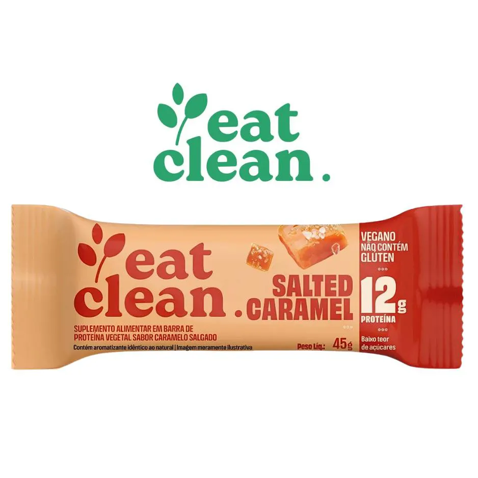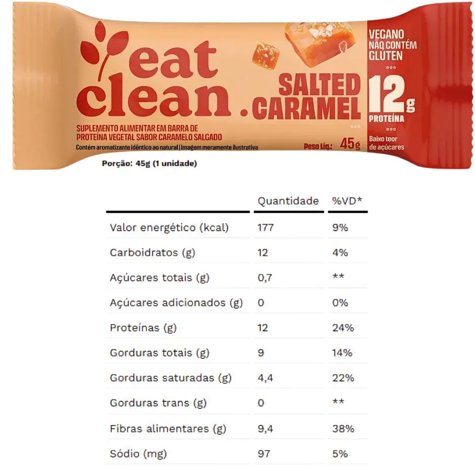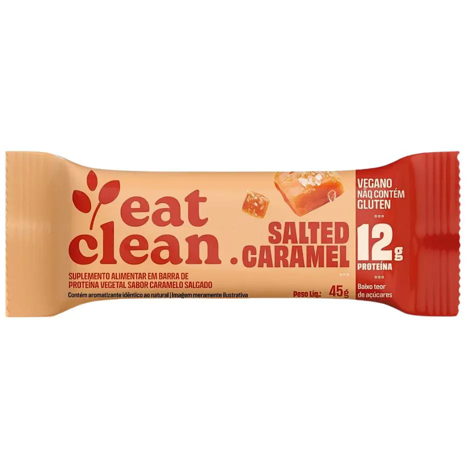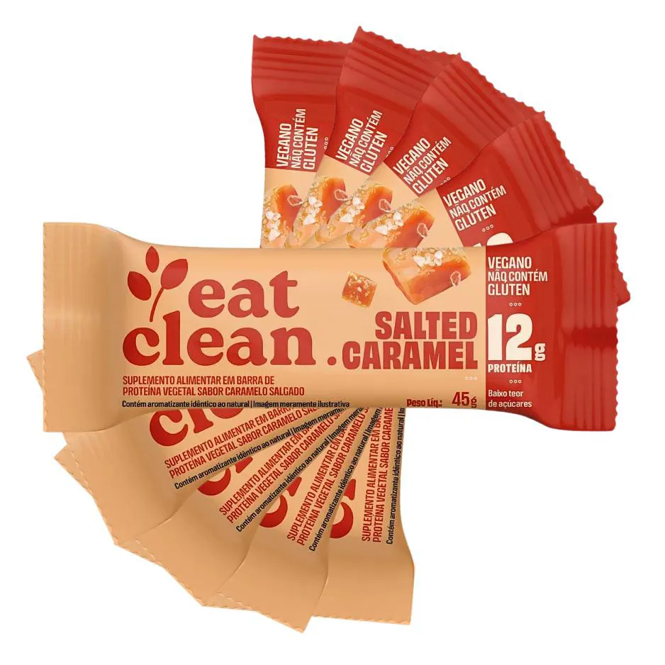 Barra Vegana (sem Gluten) Eat Clean Sabor Salted Caramel 45g - Kit 5 Unid
