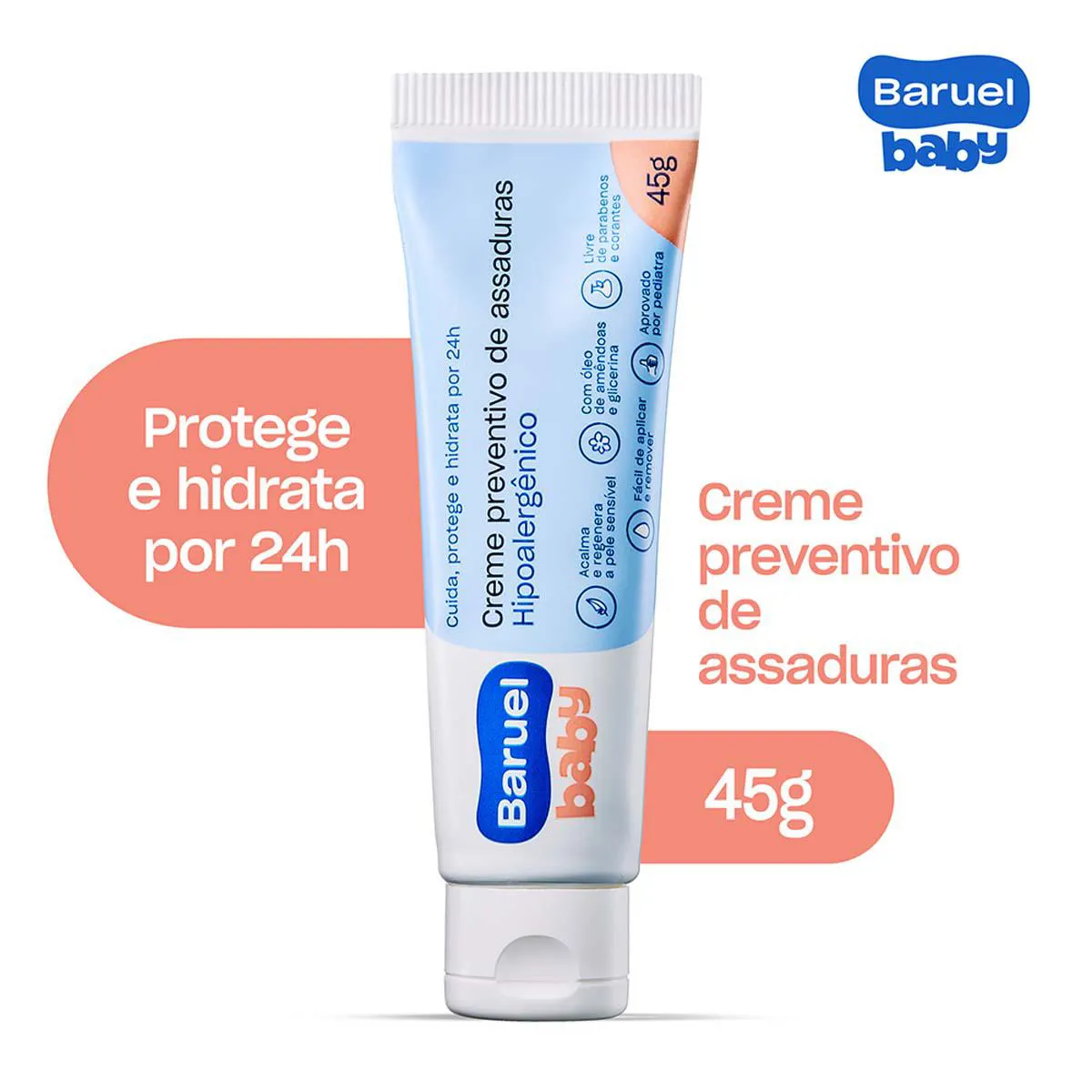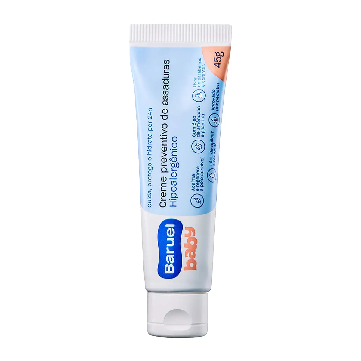 - O uso diário de do creme Baruel Baby a cada troca de fralda diminui a ocorrência de assaduras.