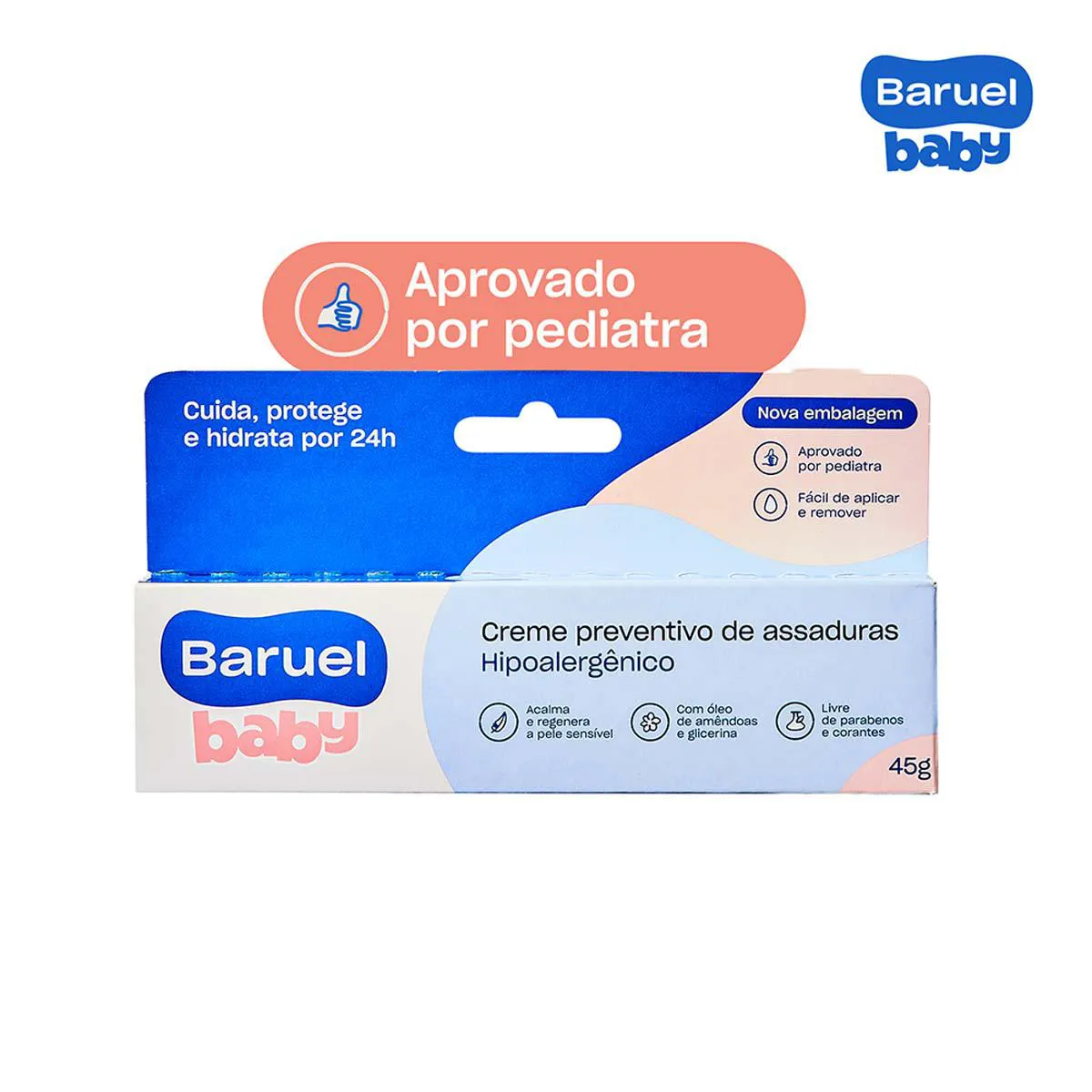 Formulado com Óleo de Amêndoas, Óxido de Zinco e Glicerina, seu uso forma uma barreira que protege e hidrata por 24 horas, fortalecendo a barreira natural da pele dos pequenos.