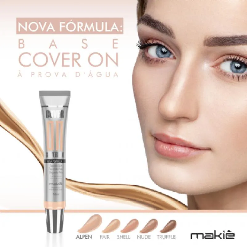 base COVER ON SECOND SKIN - NOVA FÓRMULA À PROVA D'ÁGUA - WATERPROOF Base líquida matte para correção da pele com alta cobertura , efeitos especiais para câmera e ambientes de estúdio. Também chamada de “Segunda Pele” devido ao seu resultado e perfeição – uma nova geração de alta performance. Líquida, fácil aplicação, secagem perfeita e aveludada. Elaborada com matéria prima de alta tecnologia, silicone especial que transfere efeito homogêneo, longa duração e à base de pigmentos minerais e dermatológicos. De alta cobertura e saturação de cor, dá o acabamento perfeito matte. Vem em uma linda bisnaga com bico dosador. Deve ser aplicada numa pequena quantidade nos pontos principais do rosto e espalhar com pincel, onde ela se comporta dando maior cobertura ou com esponja goute, ponta dos dedos ou da forma e efeito que preferir. Tem efeito óptico de pele lisa e uniforme, com câmera e luz o efeito é maior e suaviza linhas de expressão com o efeito soft focus. Indicado também para maquiagem profissional. Testado e aprovado em ambiente de estúdio, filmagem, fotografia e luz, podendo ser usada em todos os tipos de pele. Dicas de uso: após aplicação, selar com o Pó Fix Makiê ou Pó Compacto do tom da sua pele fazendo um mix com tons para contorno. Para resultados de maior cobertura de manchas, USE a COVER ON em conjunto com a CAMUFLAGEM MAKIÊ. *Uso diário. Produto não testado em animais. Não contém matéria prima de origem animal. Volumetria: 30g