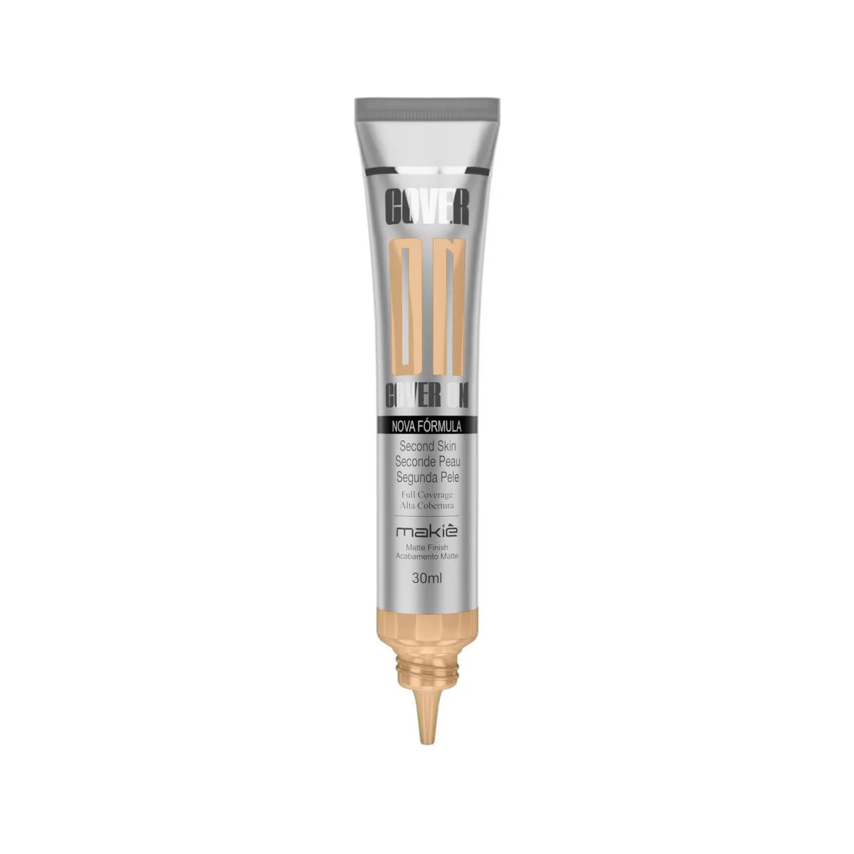 base COVER ON SECOND SKIN - NOVA FÓRMULA À PROVA D'ÁGUA - WATERPROOF Base líquida matte para correção da pele com alta cobertura , efeitos especiais para câmera e ambientes de estúdio. Também chamada de “Segunda Pele” devido ao seu resultado e perfeição – uma nova geração de alta performance. Líquida, fácil aplicação, secagem perfeita e aveludada. Elaborada com matéria prima de alta tecnologia, silicone especial que transfere efeito homogêneo, longa duração e à base de pigmentos minerais e dermatológicos. De alta cobertura e saturação de cor, dá o acabamento perfeito matte. Vem em uma linda bisnaga com bico dosador. Deve ser aplicada numa pequena quantidade nos pontos principais do rosto e espalhar com pincel, onde ela se comporta dando maior cobertura ou com esponja goute, ponta dos dedos ou da forma e efeito que preferir. Tem efeito óptico de pele lisa e uniforme, com câmera e luz o efeito é maior e suaviza linhas de expressão com o efeito soft focus. Indicado também para maquiagem profissional. Testado e aprovado em ambiente de estúdio, filmagem, fotografia e luz, podendo ser usada em todos os tipos de pele. Dicas de uso: após aplicação, selar com o Pó Fix Makiê ou Pó Compacto do tom da sua pele fazendo um mix com tons para contorno. Para resultados de maior cobertura de manchas, USE a COVER ON em conjunto com a CAMUFLAGEM MAKIÊ. *Uso diário. Produto não testado em animais. Não contém matéria prima de origem animal. Volumetria: 30g