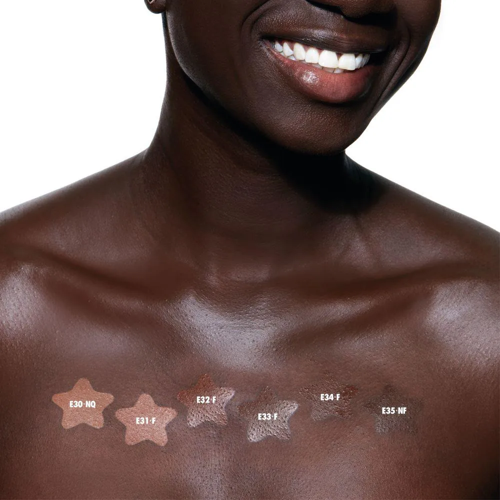 3. Para um acabamento mais natural, finalize dando leves batidas com uma esponja macia. Dica: Para um resultado ainda mais incrível, utilize outros tons do mesmo produto para corrigir, contornar e iluminar. Precauções: