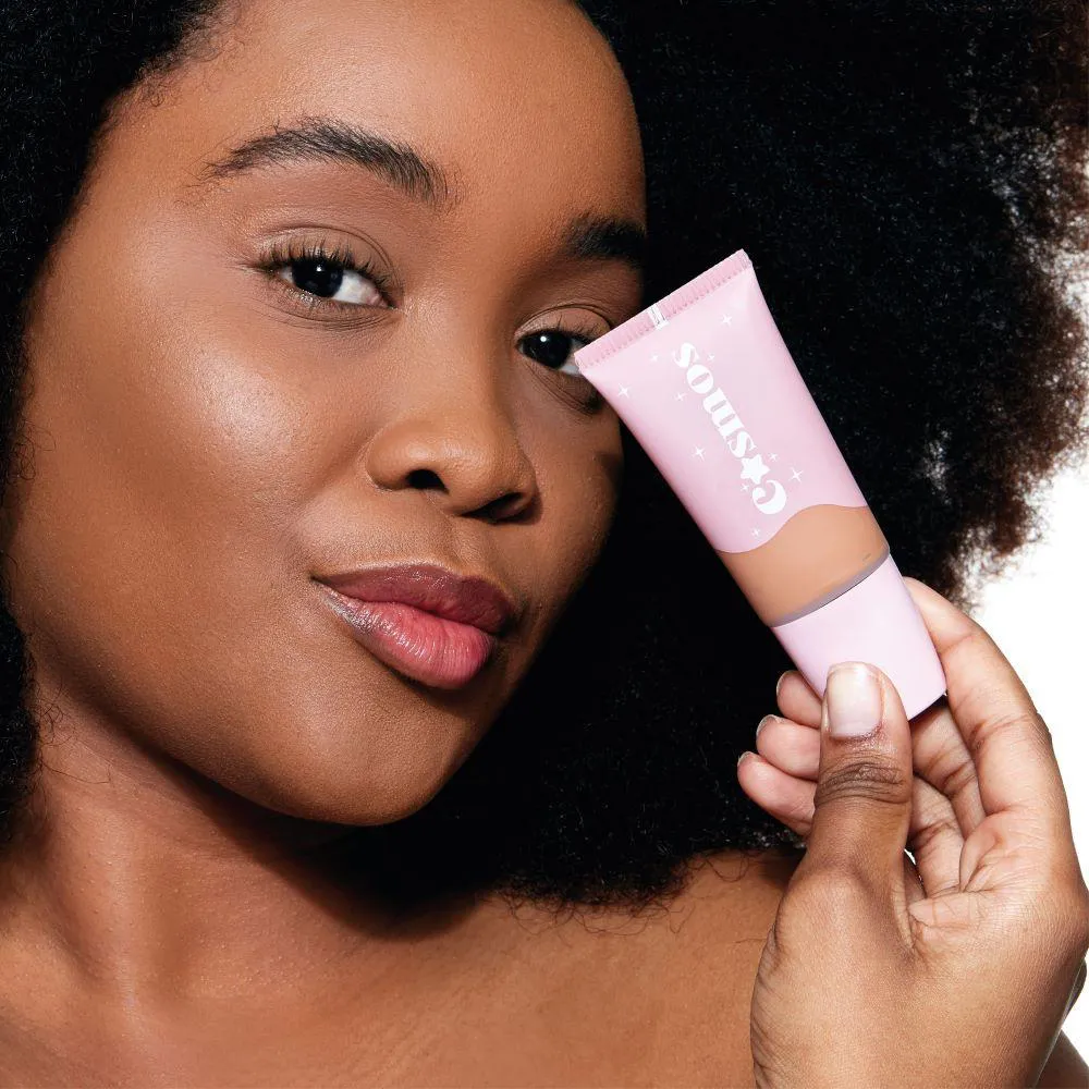 A Base Cosmos By Karen Bachini é ideal para quem busca efeito semi matte, natural e confortável, unindo proteção solar eficaz, inclusive com ativos que ajudam a controlar a oleosidade e disfarce dos poros.