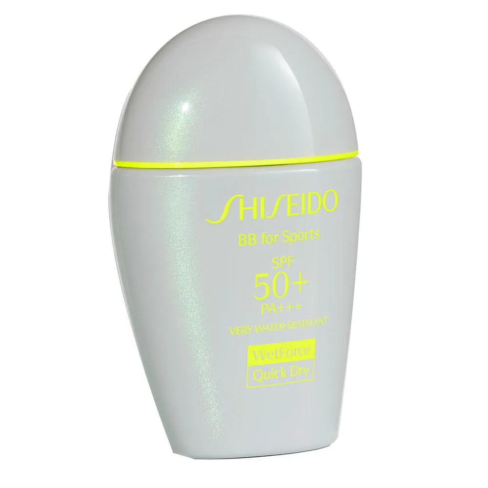 Tecnologia: Tecnologia Quick Dry: A Shiseido usa a Tecnologia Quick Dry, inspirada na indústria têxtil, para evitar um acabamento pegajoso e aparência de maquiagem derretida. O BB for Sports possui uma tecnologia de duas camadas. A primeira, é uma camada cosmética hidrofóbica (repele a água), que empurra o suor que sai da glândula sudorípara até a superfície. A segunda camada é hidrofílica (adere a água), por isso atrai o suor para esta camada fina e mais externa uniformemente, em seguida, o ar entra em contato com ele, secando-o rapidamente, antes que o suor possa borrar o acabamento da maquiagem ou deixar a pele pegajosa e com excesso de brilho. A ação pode ser resumida como: Repele, espalha e seca.