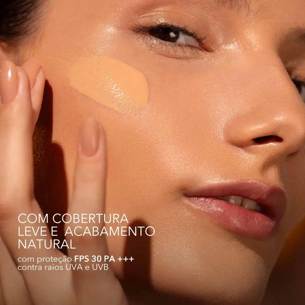 Um dos benefícios de usar a base de acabamento natural é poder criar uma maquiagem leve e fácil de fazer, ideal para a rotina corrida. O produto também é ótimo para proporcionar um viço que dá um up na produção!