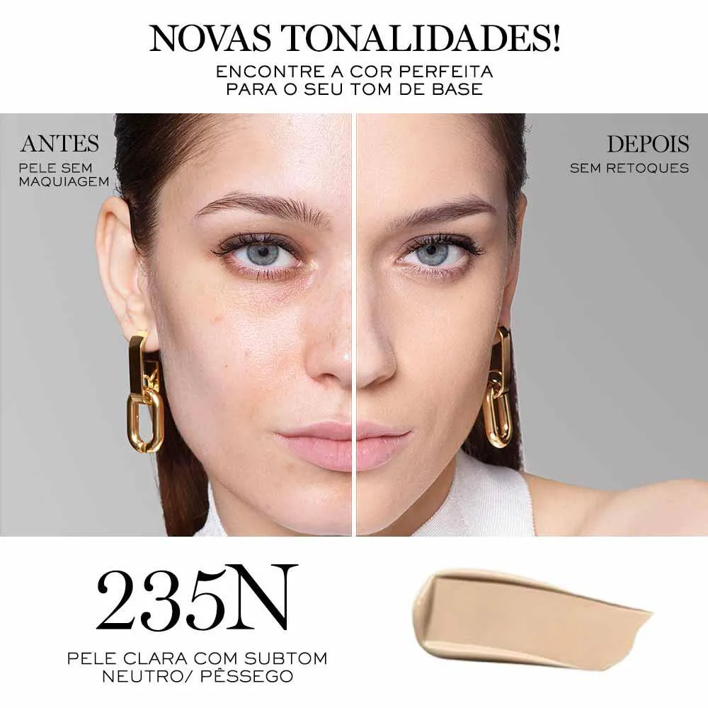 Cobre perfeitamente as imperfeições com cobertura total e ajustável, com acabamento matte natural.
