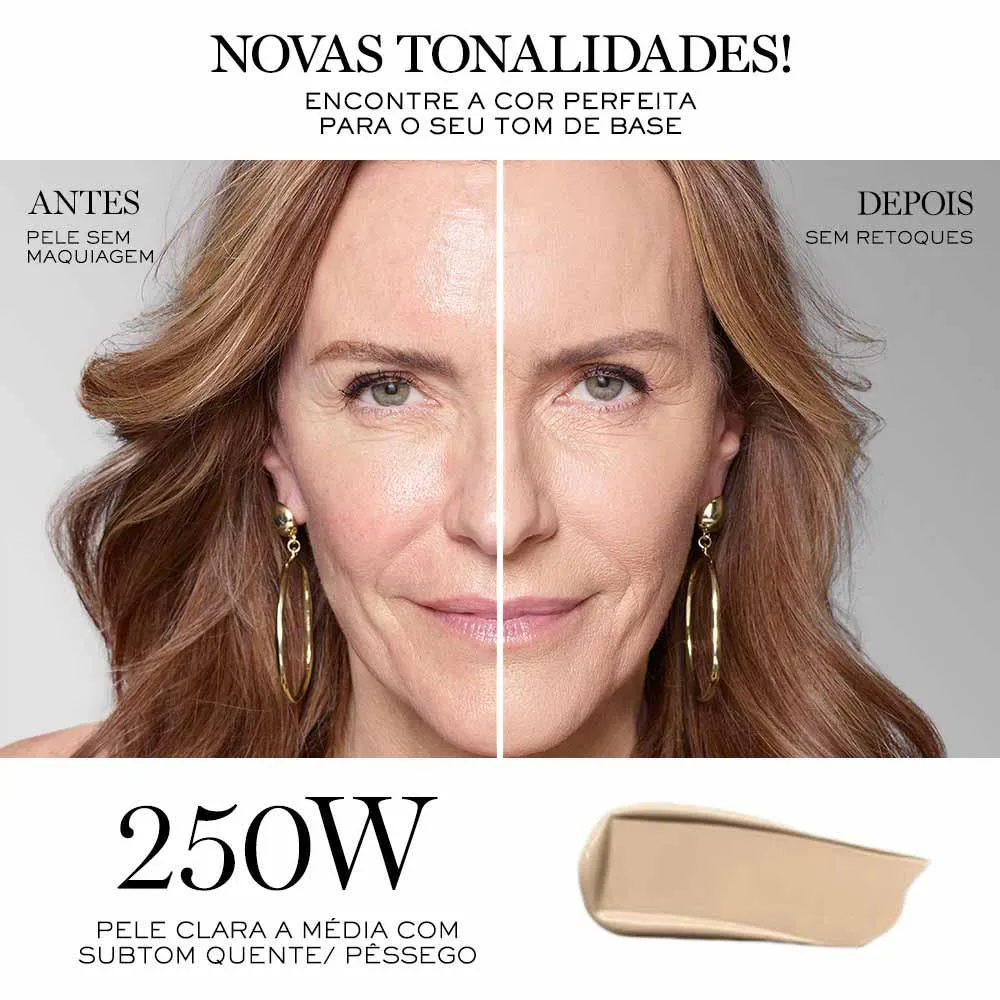 Uma fórmula renovada adequada para todos os tipos, tons e idades de pele. Com uma textura suave e fácil de espalhar, deixa a pele perfeitamente lisa, com um aspecto natural impecável e reduz o brilho.