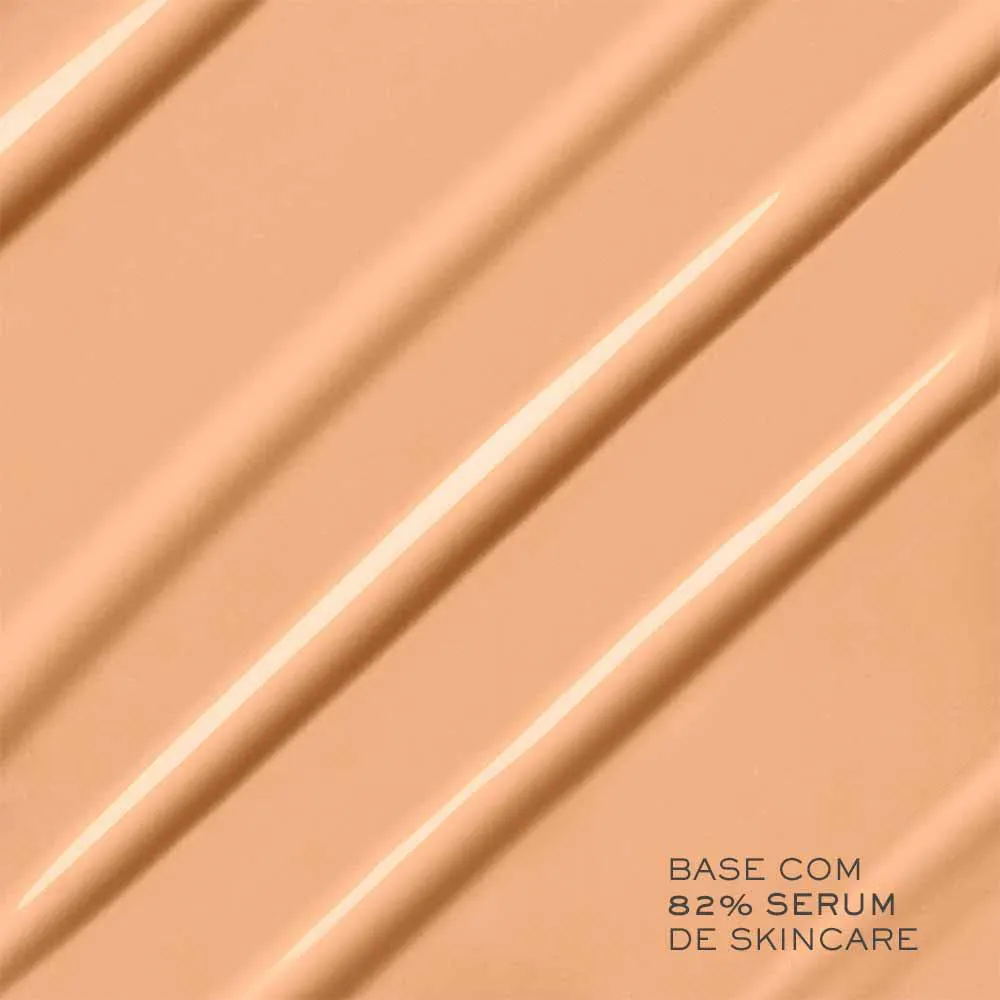 A base possui uma fórmula inovadora com os ativos mais desejados por amantes de skincare. O Ácido Hialurônico, que intensifica e proporciona uma hidratação duradoura, retendo a hidratação natural da pele proporcionando uma aparência saudável e um acabamento glow. E Ácido mandélico, que refina e suaviza a textura da pele ao longo do tempo de uso, além de impulsionar a produção de colágeno. Pessoas que buscam ingredientes de skincare na maquiagem qualquer hora do dia 20+.