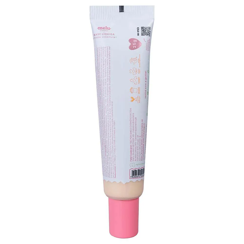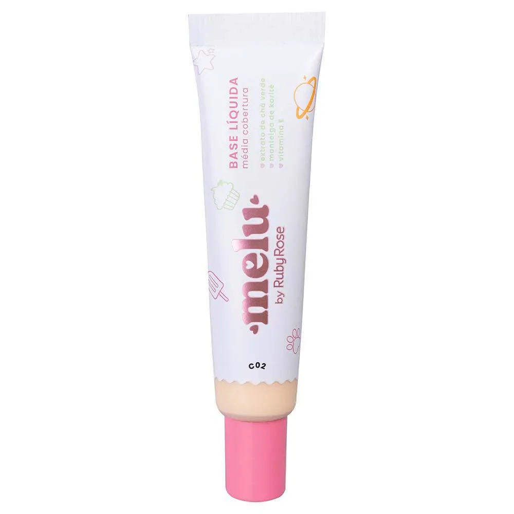 A base Líquida Melu by RUBYROSE possui uma cobertura média e acabamento semi matte, dá para corrigir as imperfeições e ainda assim ter uma pele bem incrível.