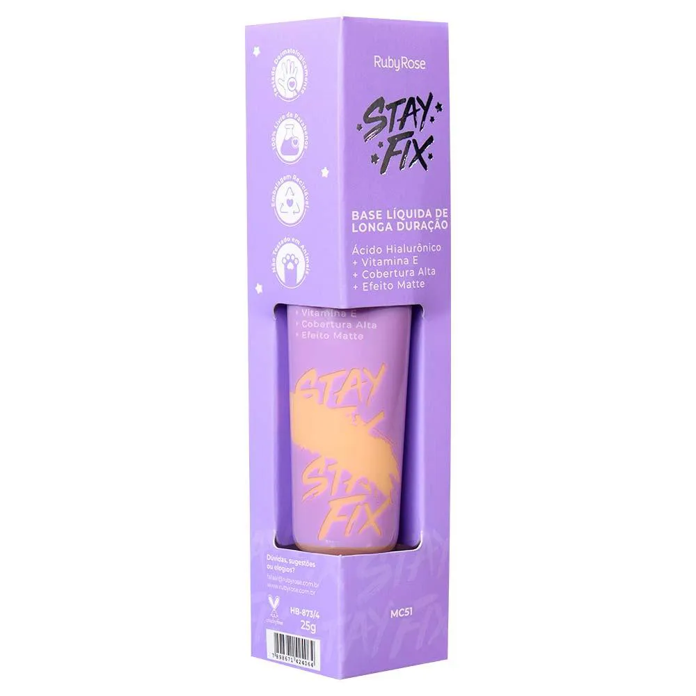 A base Líquida de Longa Duração Stay Fix, oferece uma alta cobertura com altas horas de duração para dar um acabamento impecável resistente à rotina. Com fórmula líquida, suave e com alta cobertura, cria uma camada uniforme sobre a pele que disfarça imperfeições sem desaparecer ao longo do dia, sendo resistente até mesmo a correria do dia a dia.