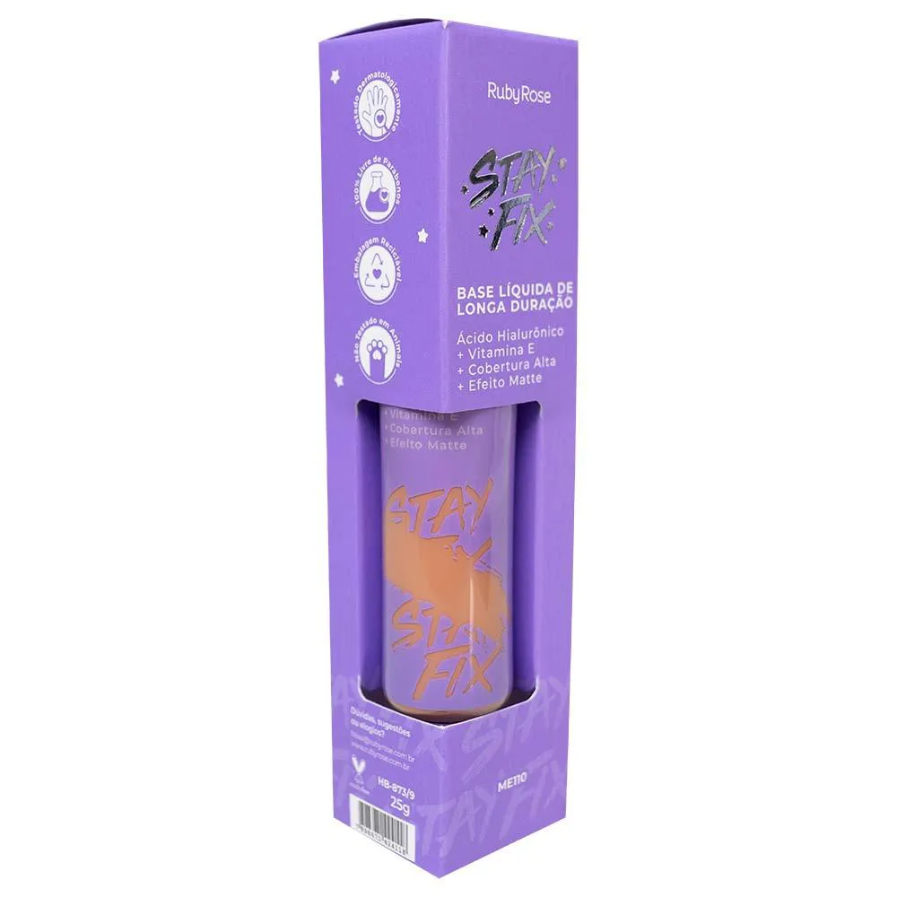 A base Líquida de Longa Duração Stay Fix, oferece uma alta cobertura com altas horas de duração para dar um acabamento impecável resistente à rotina. Com fórmula líquida, suave e com alta cobertura, cria uma camada uniforme sobre a pele que disfarça imperfeições sem desaparecer ao longo do dia, sendo resistente até mesmo a correria do dia a dia.