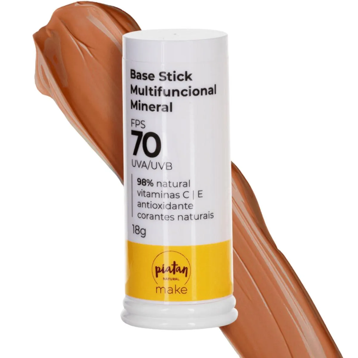 Base Stick Multifuncional Mineral Fps 70 Uva/Uvb Bege Escuro Vegano Make Piatan Natural 3,8G