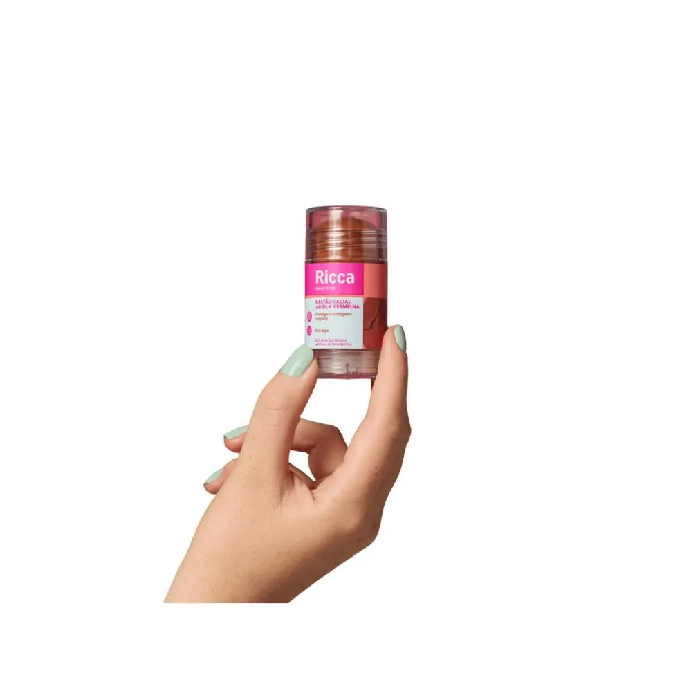 O bastão facial de argila vermelha tem antioxidantes e extratos botânicos que possuem a ação antipoluição, que reforçam as defesas da pele, protegendo o colágeno e ajudando a prevenir o fotoenvelhecimento.