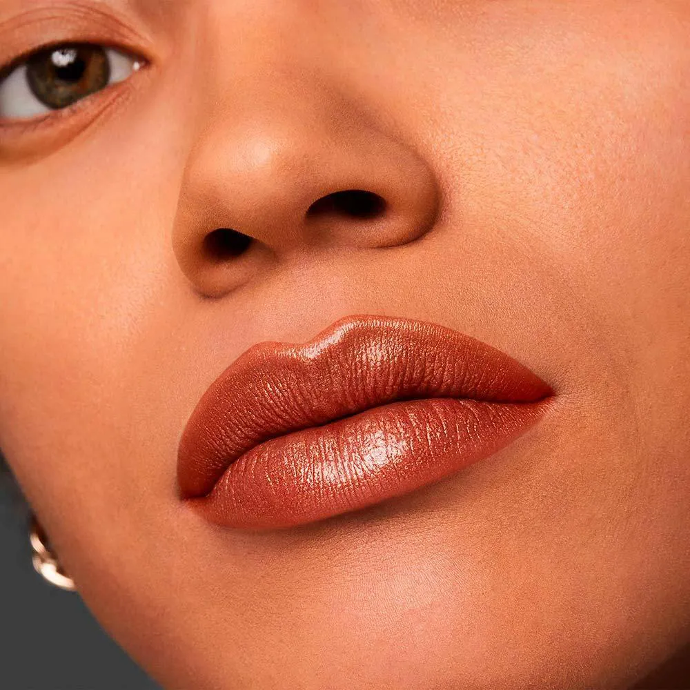 Acabamento Cremoso: Sua fórmula desliza sem esforço para um acabamento suave e acetinado. É um batom de alta cobertura com benefícios de skincare preenchendo, nutrindo e condicionando os lábios.