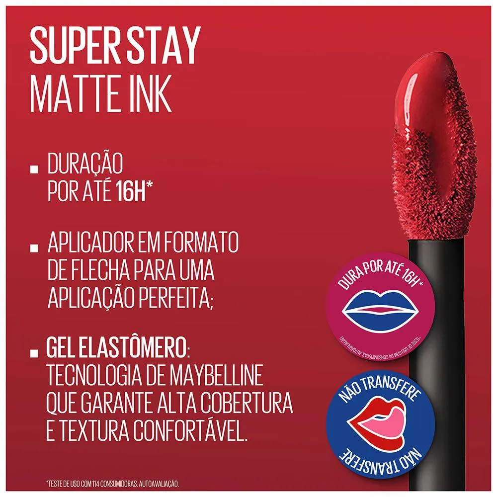 batom Líquido, Acabamento Matte e Longa Duração de 16H, Maybelline NY SuperStay Matte Ink