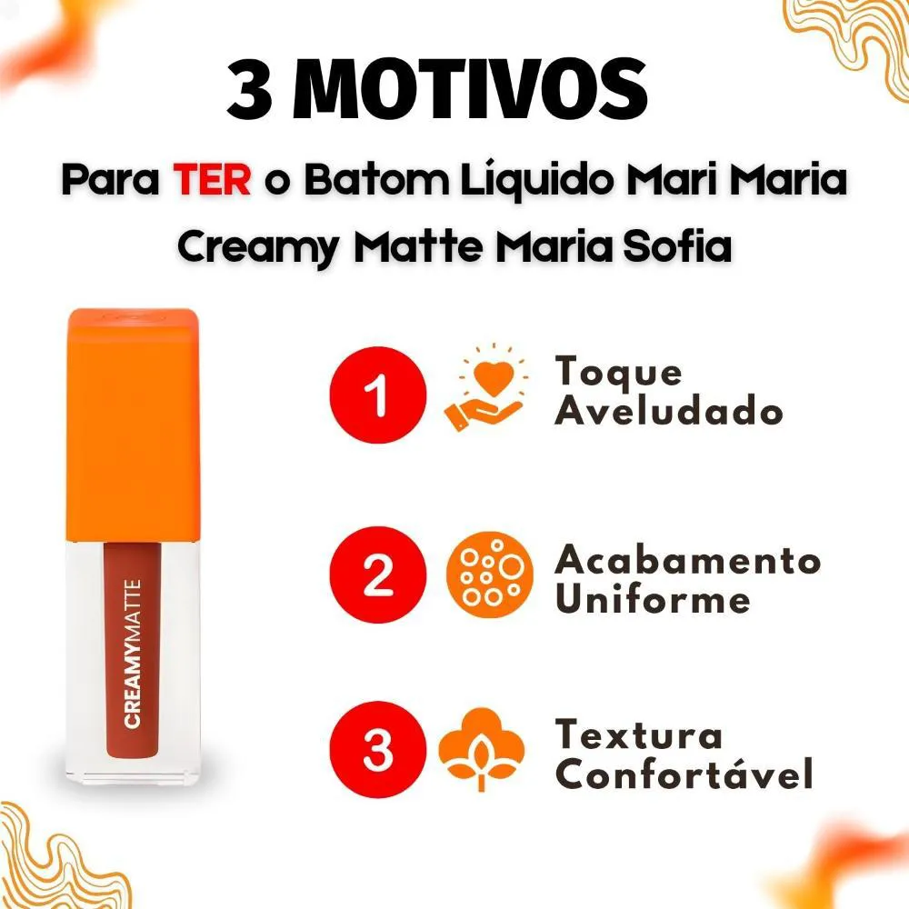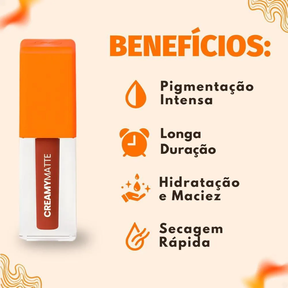 O Batom Líquido Mari Maria Makeup Creamy Matte é a escolha ideal para quem busca uma maquiagem sofisticada e duradoura, com um toque de conforto. Este batom combina alta pigmentação com um acabamento aveludado e confortável, proporcionando lábios vibrantes, macios e sofisticados. A linha oferece 15 cores irresistíveis, incluindo nudes, marrons, rosados, vermelhos e vinhos, perfeitas para qualquer ocasião, garantindo que seus lábios se destaquem com elegância. Ideal para mulheres que desejam realçar sua beleza natural com um produto de alta qualidade e longa duração.Benefícios Principais