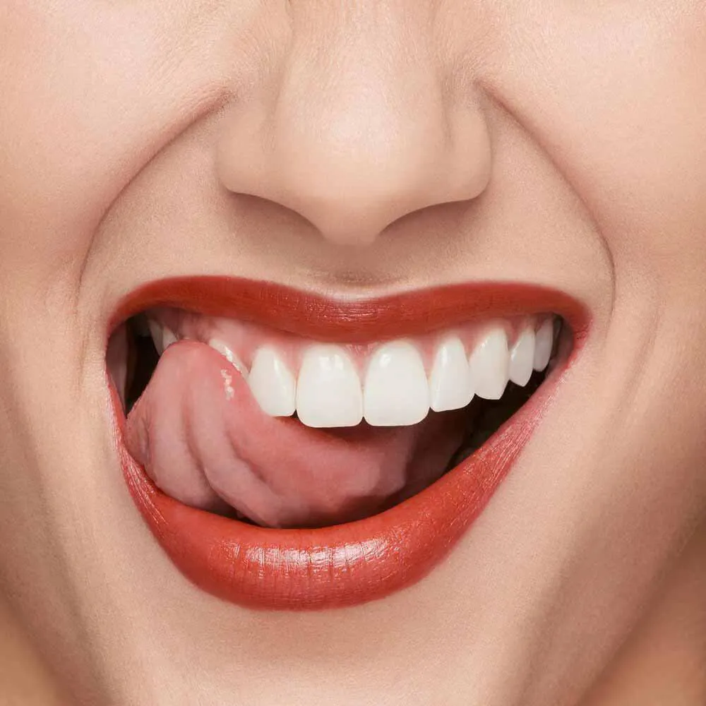 Deslize a bala especialmente angulada pelos lábios para obter cores precisas em um só golpe.