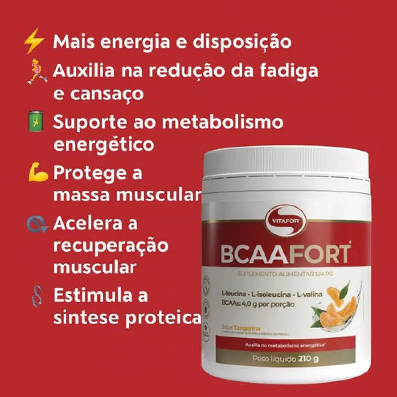 O BCAA Fort Vitafor é um suplemento alimentar em pó desenvolvido com a combinação dos aminoácidos de cadeia ramificada L-leucina, L-isoleucina e L-valina, fundamentais para a recuperação e manutenção da massa muscular.
