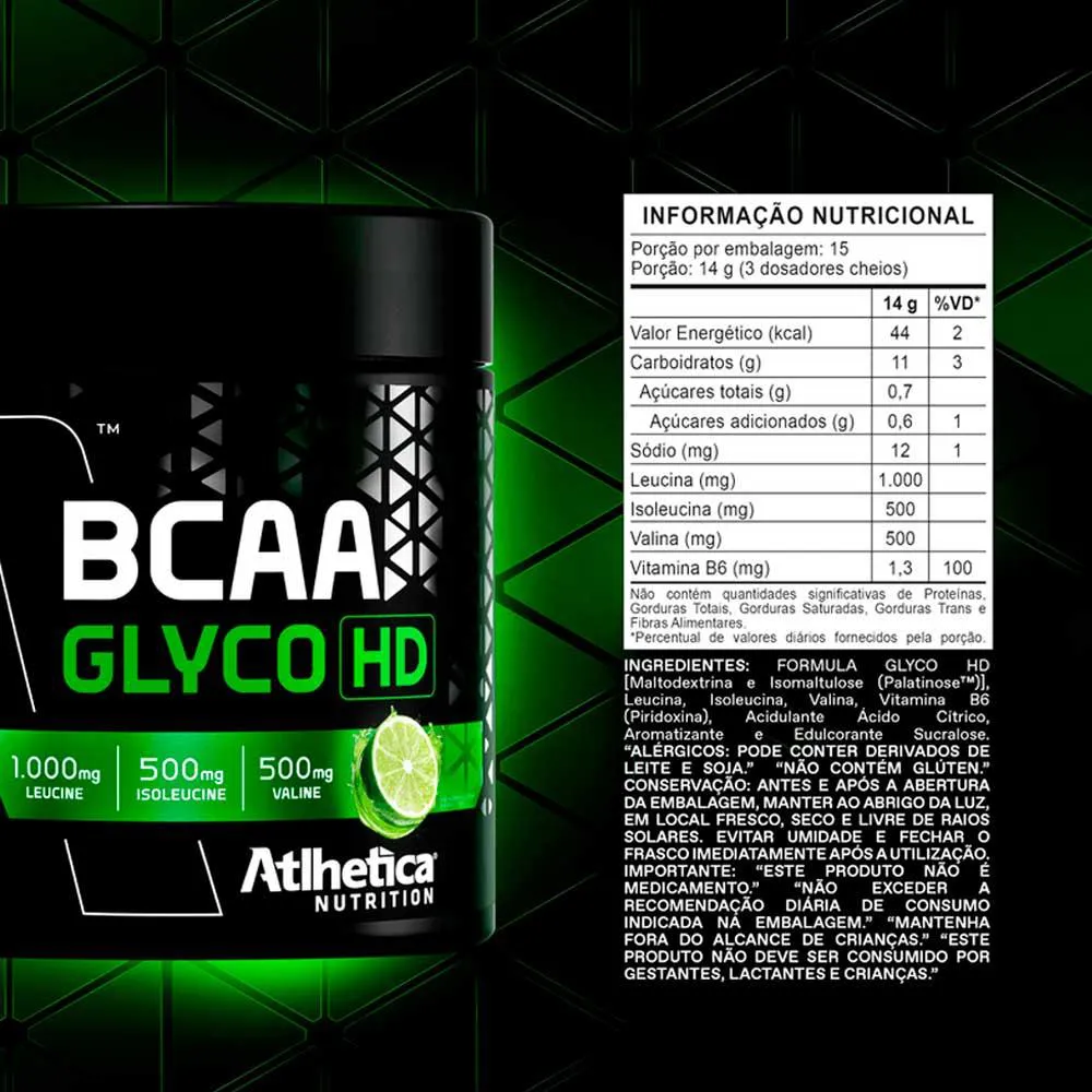 O BCAA Glyco HD da Atlhetica Nutrition é um suplemento em pó que combina aminoácidos de cadeia ramificada (BCAAs) com carboidratos estratégicos, criando uma fórmula potente para maximizar. Ideal para atletas e praticantes de atividades físicas, este suplemento fornece nutrientes cruciais pós-treino e intra treino em treinos intensos.