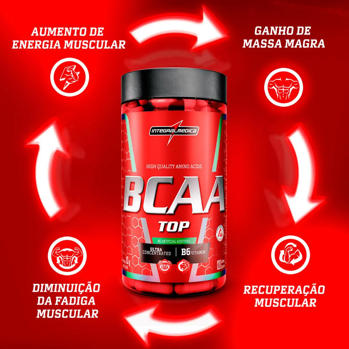 BCAA Top é a melhor opção para uma rápida recuperação muscular. Sua fórmula ultra concentrada garante aumento de energia e apoio na recuperação de micro-lesões.