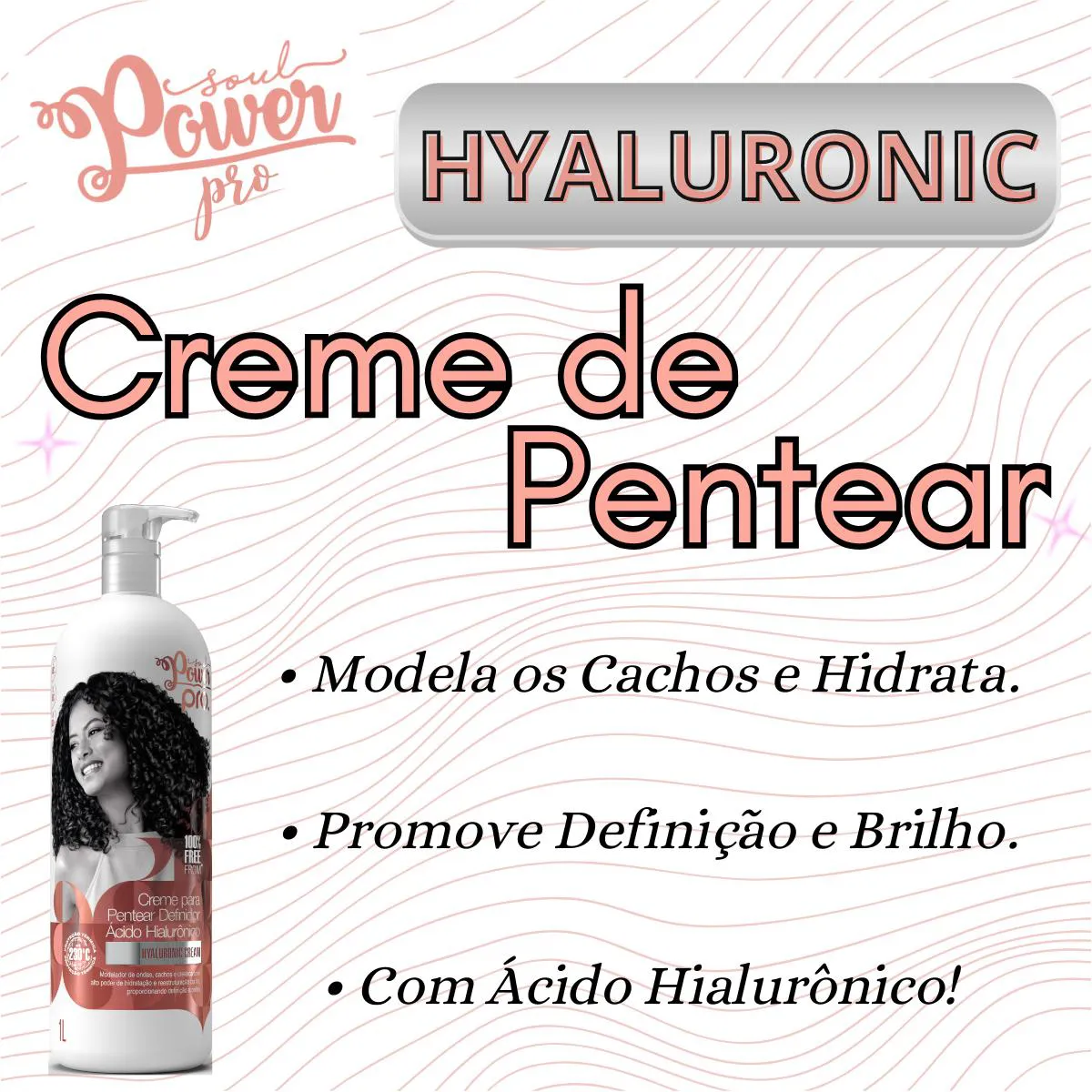 O QUE VOCÊ IRÁ RECEBER?01 x UNIDADE - CREME DE PENTEAR hidratante COM ÁCIDO HIALURÔNICO HYALURONIC CREAM 1L - SOUL POWER.