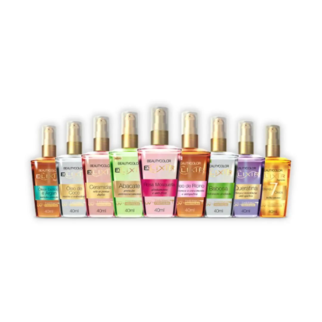 SOBRE O PRODUTOO Elixir BEAUTYCOLOR contém óleos essenciais que te ajudam a cuidar dos seus fios na correria do dia a dia. São liberados para a técnica de “LOW” e possuem filtro UV e proteção térmica para proteger seus cabelos contra agressões externas.