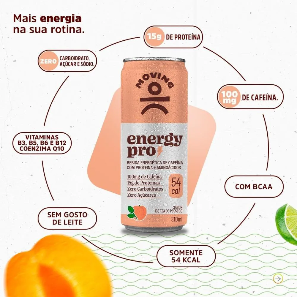 Bebida Proteica Moving Energy Iced Tea e Pêssego 310ml – Energia e Recuperação Muscular em Cada Gole A Bebida Proteica Energizante com Aminoácidos e Cafeína Energy Pro Ice Tea de Pêssego Moving é a escolha perfeita para quem deseja energia rápida e suporte nutricional de alta qualidade. Com 15g de proteína, 100mg de cafeína e um perfil nutricional completo, ela proporciona o equilíbrio perfeito para a recuperação muscular e aumento de disposição. Diferenciais Exclusivos: