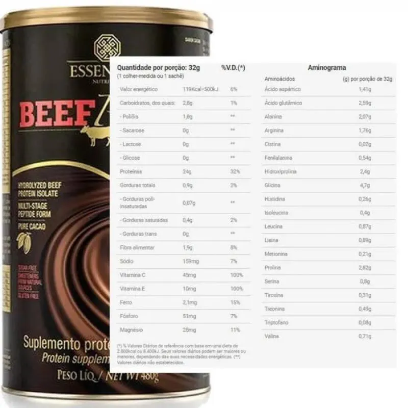 Beef Protein é um suplemento à base de proteína 100% hidrolisada da carne bovina com sabor do puro cacau.