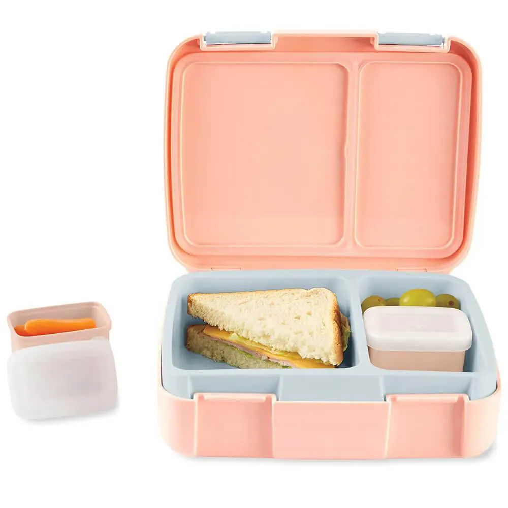 A Bento Box Spark Style da Skip Hop foi criada para transformar a hora do lanche em um momento mais prático, organizado e cheio de estilo. Com compartimentos internos divididos e vedação segura, ela é perfeita para embalar porções equilibradas e evitar bagunça na mochila. Ideal para crianças a partir de 3 anos, possui fechos fáceis de manusear, alça flexível e é compatível com lava-louças (prateleira superior).