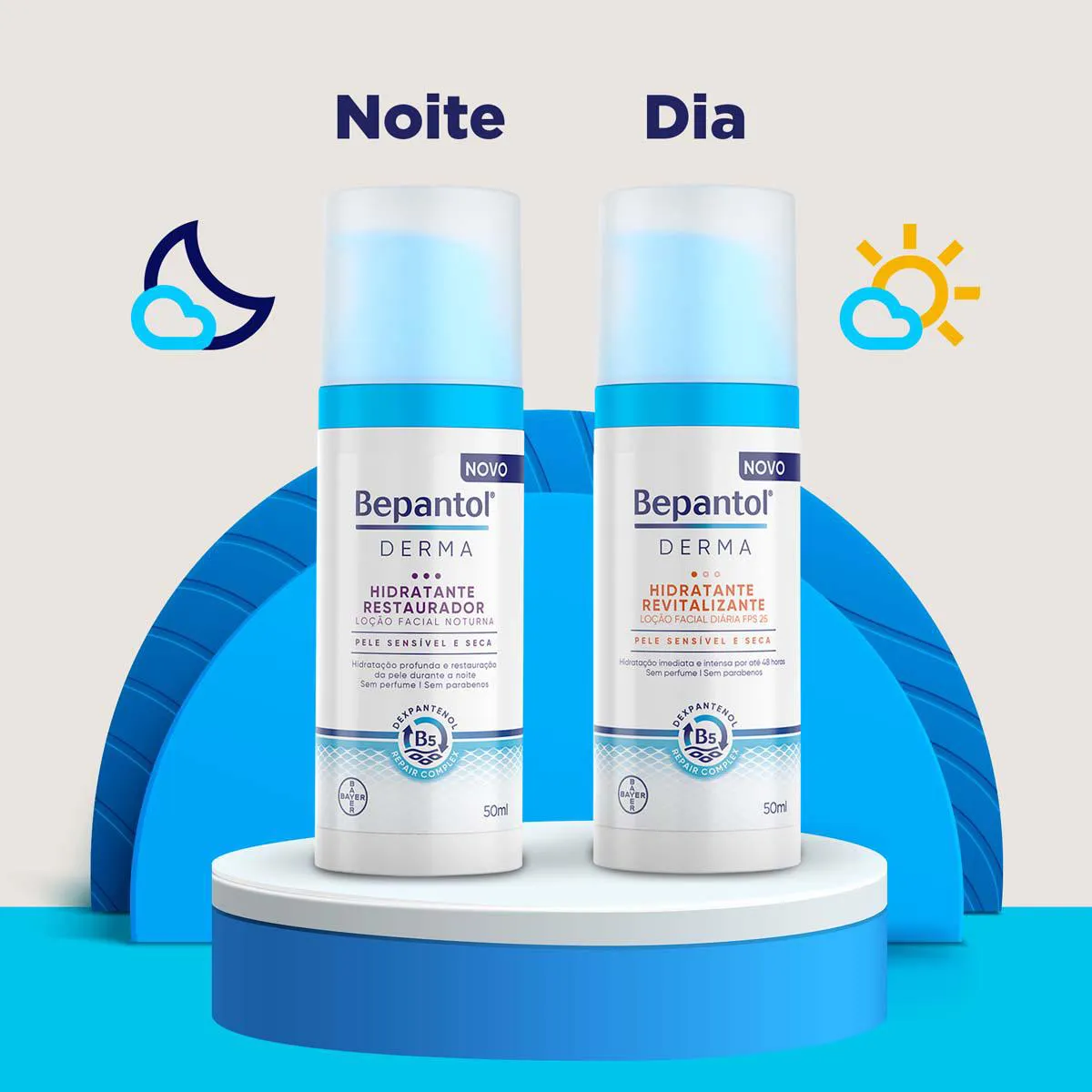 A Loção Facial Noturna Bepantol Derma é um produto cosmético desenvolvido especialmente para peles secas e sensíveis, com uma fórmula livre de sabão, conservantes, parabenos, corantes e fragrância. Possui uma composição única de ingredientes que atuam diretamente nas causas da pele seca.