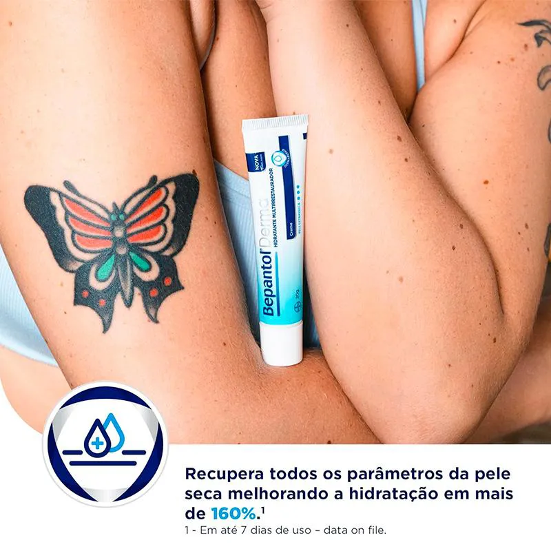 O Bepantol Derma Creme Corporal Multirrestaurador é um potente hidratante com alta concentração de dexpantenol (pró-vitamina B5), especialmente formulado para regiões ressecadas do corpo que precisam de cuidado intensivo, como pés, calcanhares, cutículas, cotovelos, joelhos e áreas tatuadas. Sua fórmula exclusiva com lanolina e óleo de amêndoas doces proporciona hidratação profunda, auxiliando na restauração da barreira cutânea e prevenindo a descamação da pele.De rápida absorção e sem sensação oleosa, deixa a pele macia, suave e saudável desde a primeira aplicação.