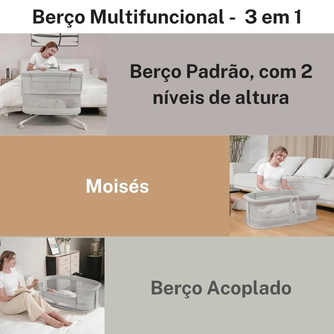 O Berço Portátil Acoplado 3 em 1 com Balanço Automático da Mastela é a escolha perfeita para pais que buscam segurança, conforto e praticidade para as primeiras noites do bebê. Mais do que um simples berço, este produto combina tecnologia avançada, design funcional e recursos inovadores para tornar a rotina com o bebê ainda mais especial.